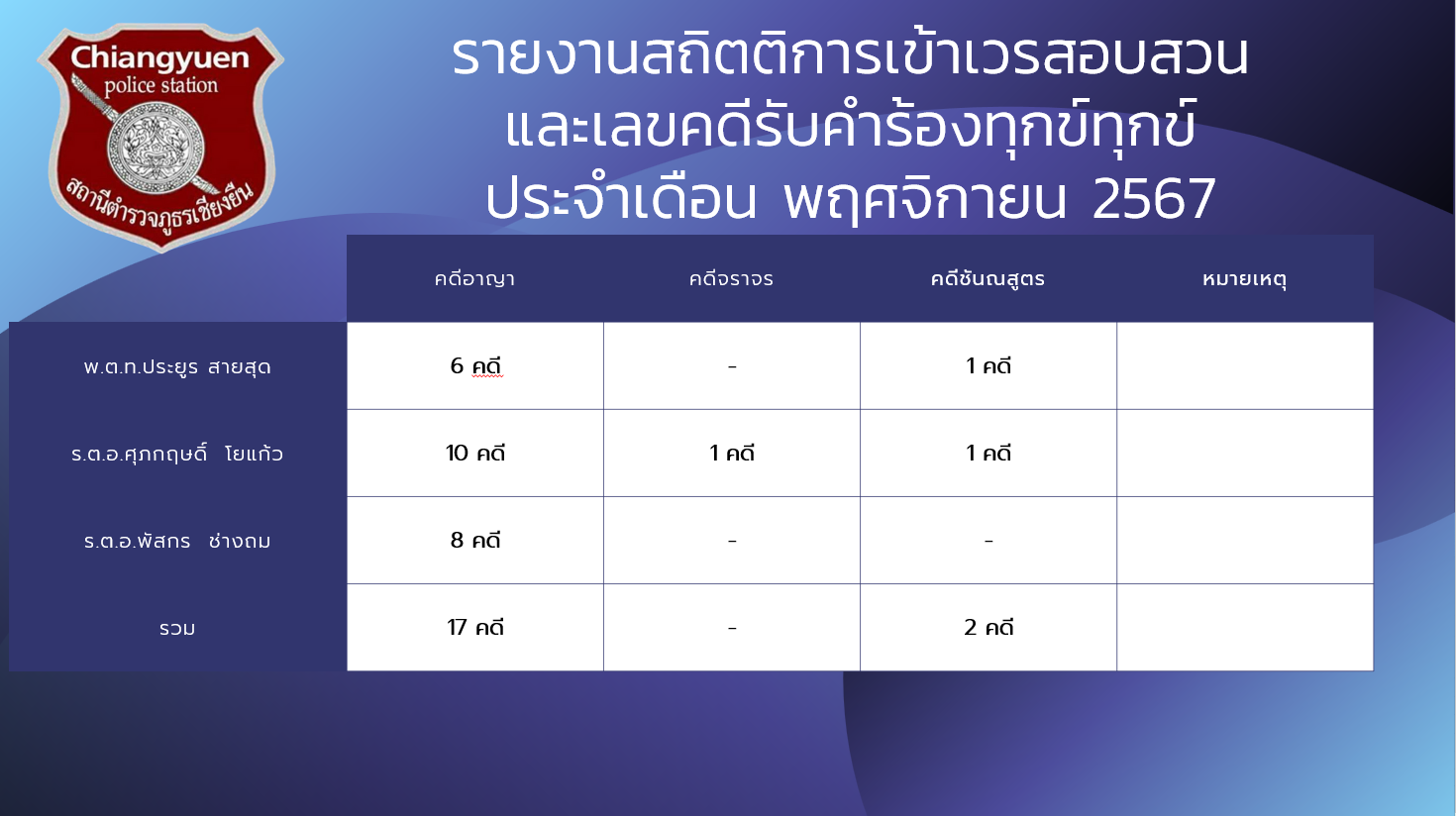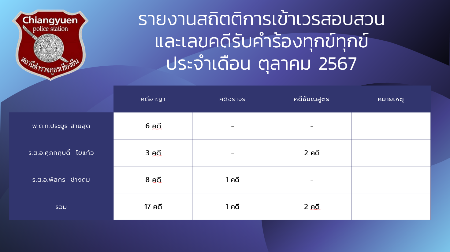 รายงานผลการปฏิบัติประจำเดือน สภ.เชียงยืน วันที่ 31 ต.ค. 2567 เวลา 23.50 รายงานผลการปฏิบัติประจ…