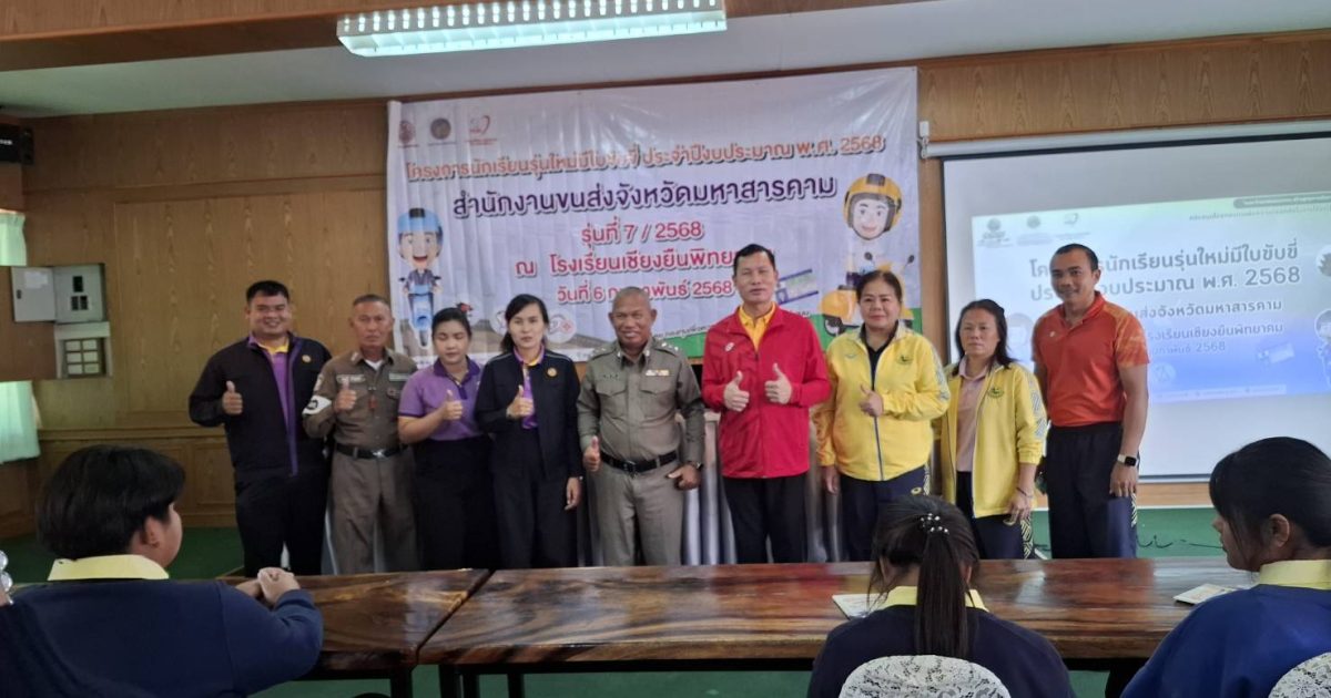 วันที่ 6 ก.พ.2568 เวลา 09.00 น. โดยการอำนวยการของ พ.ต.อ.เจษฎา คุ้มศาสตรา ผกก.สภ.เชียงยืน , พ.ต.ท.ณพรุจ ราชคาม รอง ผกก.ป.ฯ , พ.ต.ท.ภูดิส ชัยชนะ สวป.ฯ มอบหมายให้ ร.ต.อ.ประเสริฐ พลรักษา รอง สว.จร.ฯ และ ร.ต.ท.ทองดี ศรีจุลลา รอง สว.(จร.)ฯ ร่วมเป็นวิทยากรบรรยายกฎหมายจราจร ในกิจกรรมอบรมโครงการนักเรียนรุ่นใหม่มีใบขับขี่ จัดโดย สำนักงานขนส่งจังหวัดมหาสารคาม ณ โรงเรียนเชียงยืนพิทยาคม