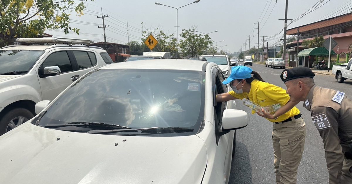 จิตอาสา สภ.เชียงยืน ร่วมกับ ประชาชน แจกน้ำดื่ม ณ จุดบริการ