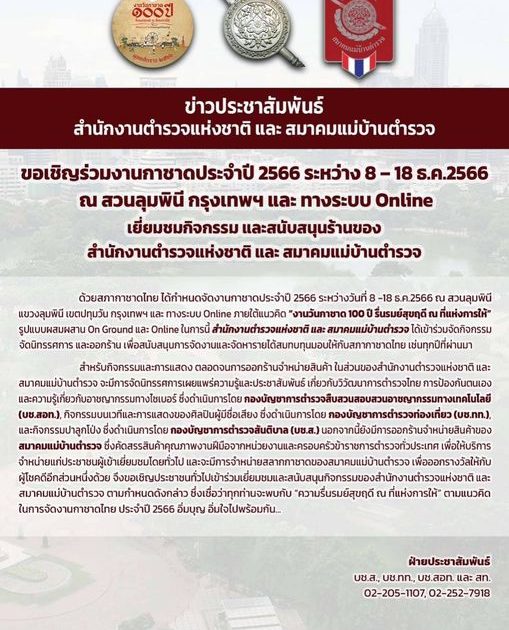 ….คณะทำงานจัดงานกาชาดของ ตร.ประจำปี 2566 ขอฝากประชาสัมพันธ์ข้อมูล รายละเอียดการจัดงานตามเอกสารแนบท้าย