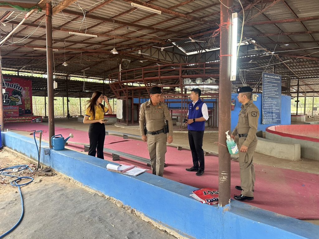 ว.4 ร่วม ฝ่ายปกครอง, ปศุสัตว์อำเภอ, สาธารณสุขอำเภอ ร่วมตรวจสอบและประเมิน สถานที่อนุญาตจัดให้มีการเล่นการพนัน(ชนไก่)