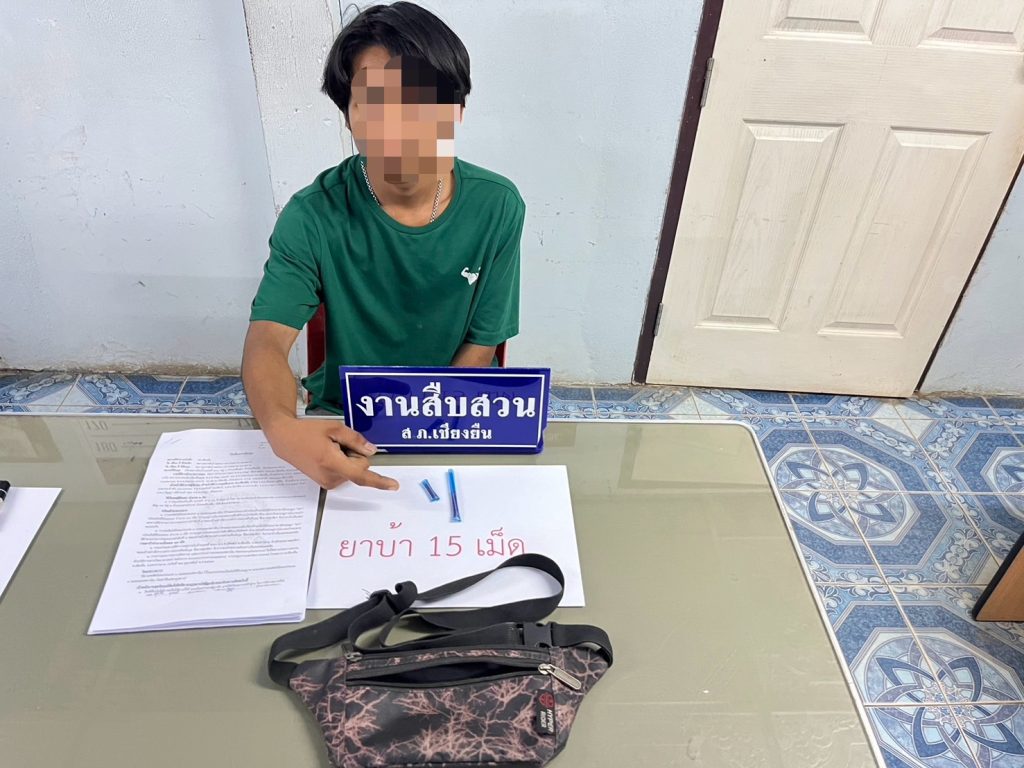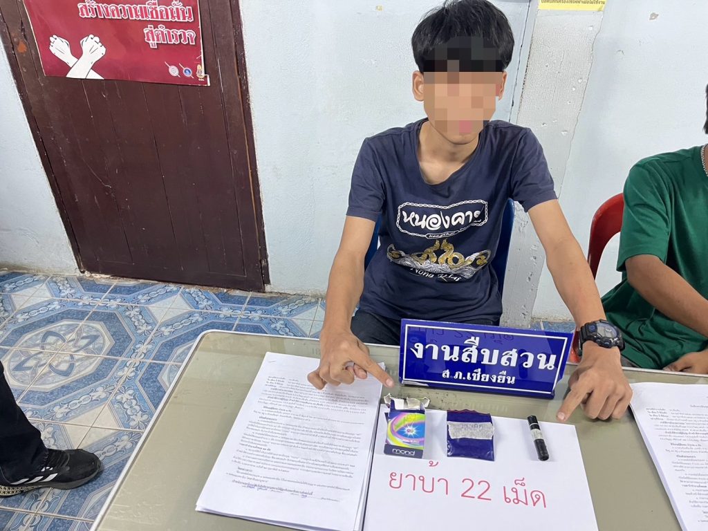 คนที่ 2 พร้อมด้วยของกลางคือ ยาบ้าจำนวน 22 เม็ด