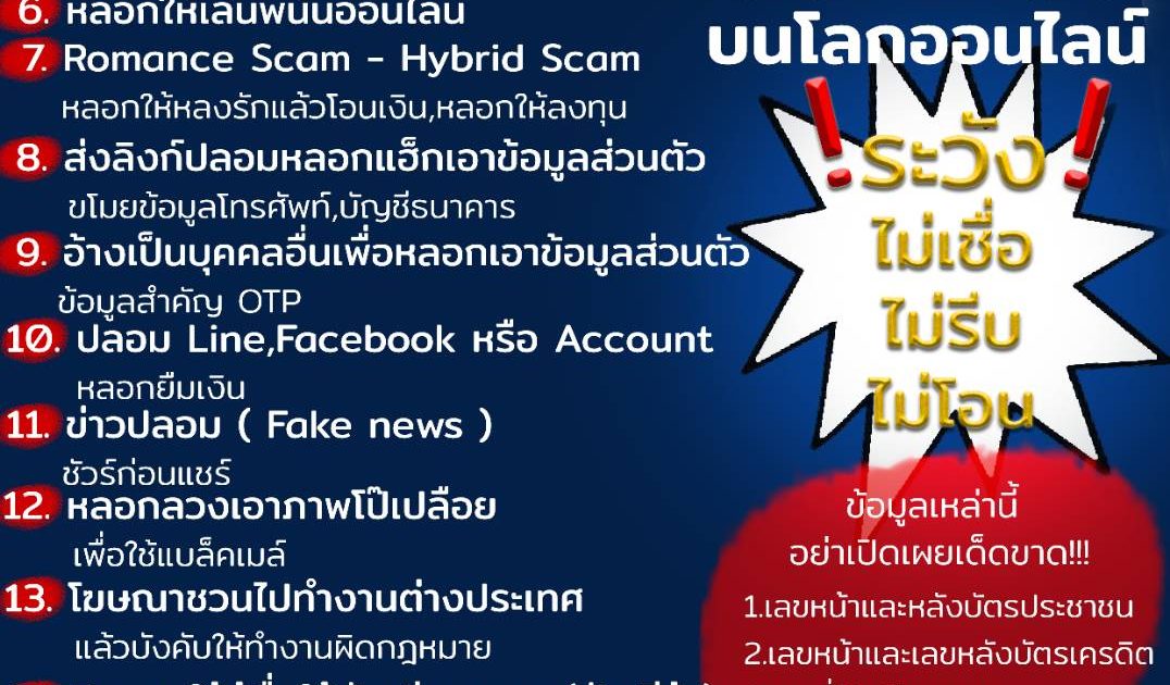 สภ.เชียงยืน ประชาสัมพันธ์ 14 ข้อ กลโกง เตือนภัยมิจฉาชีพ!! มักใช้ในการหลอกเยื่อบนโลกออนไลน์ #ระวังไม่ต้องรีบร้อน #ไม่เชื่อ #ไม่รีบ #ไม่โอน