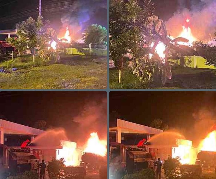 ว.4 เหตุ ไฟไหม้ถังกักเก็บน้ำมัน ปั้มน้ำมันโชคบุญมา ปิโตรเลียม บ้านโนนสวรรค์ ม.5 ตำบลเสือเฒ่า อำเภอเชียงยืน จังหวัดมหาสารคาม