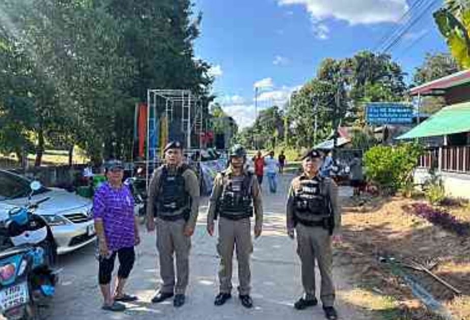 ร.ต.ต. สุรศักดิ์ ดวงทองมา รอง สว.(ป.) สภ.เชียงยืน พร้อมด้วย ชุดรักษาความปลอดภัย งานบุญ โดยมีการจัดงานมหรสพ(วงดนตรี)