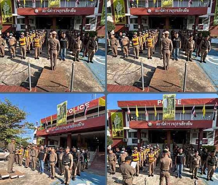 พ.ต.ท.ณพรุจ ราชคาม รอง ผกก ป. สภ.เชียงยืน,พ.ต.ท.ภูดิส ชัยชนะ สวป.สภ.เชียงยืน, พ.ต.ท.สรอรรถ ทานาค สว.สส.สภ.เชียงยืน ประชุมปล่อยแถวชุดสนุบสนุนรักษาความปลอดภัยและอำนวยความสะดวกด้านการจราจร นายกรัฐมนตรี (น.ส.แพทองทาน ชินวัตร)
