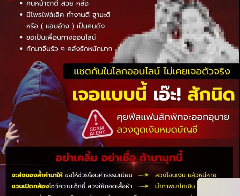 หน้าตาดี โพรไฟล์ดี บางครั้งมาในรูปแบบศิลปิน คนดัง ทักมาขอเป็นเพื่อน ชวนคุย “ฟีลแฟน” ก่อนชวนให้เสียตังด้วยอุบายต่าง ๆ