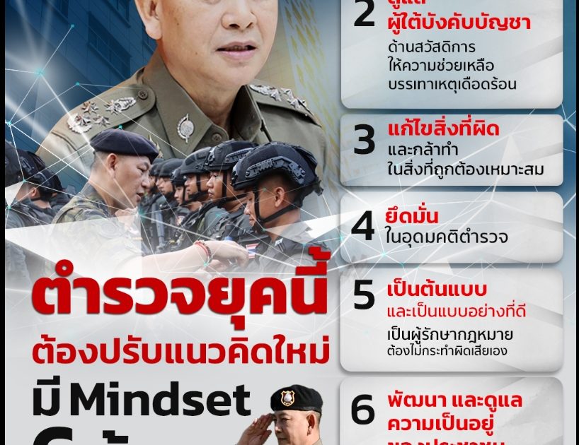 พล.ต.อ.กิตติ์รัฐ พันธุ์เพ็ชร์ ผู้บัญชาการตำรวจแห่งชาติ ( ผบ.ตร. ) กำชับในการประชุมบริหารสำนักงานตำรวจแห่งชาติ เมื่อสัปดาห์ที่ผ่านมา เน้นย้ำการปรับแนวความคิด โดยตำรวจต้องมี Mindset 6 ด้าน