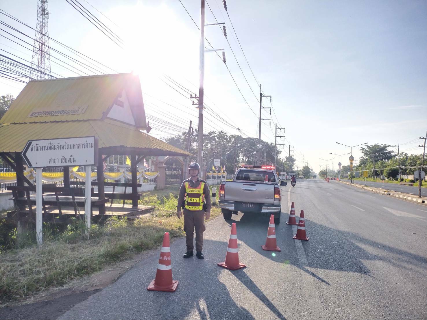 เรียน ผู้บังคับบัญชา สภ.เชียงยืน ภจว.มหาสารคาม ขอรายงานการตั้งจุดตรวจ กวดขันวินัยจราจร&