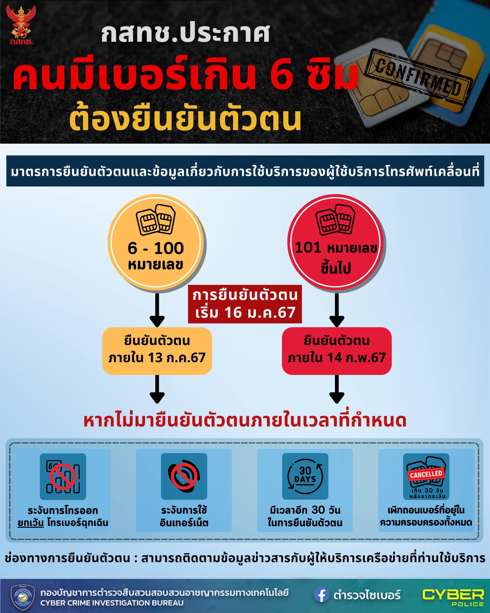 เริ่มแล้ววันนี้! ผู้ถือซิมการ์ด 6 เบอร์ขึ้นไปต้องยืนยันตัวตนตามมาตรการของ กสทช..ตำรวจไซเบอร์ขอประชาส