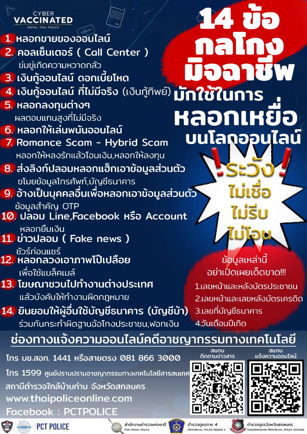 สภ.เชียงยืน ประชาสัมพันธ์ 14 ข้อ กลโกง เตือนภัยมิจฉาชีพ!! มักใช้ในการหลอกเยื่อบนโลกออนไลน์ #ระวังไม่